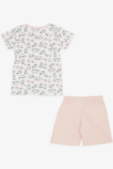 BRE Breeze Girl Baby Short Pyjama Set with Cat Pattern 9 Months-3 Years, White - Beaverton