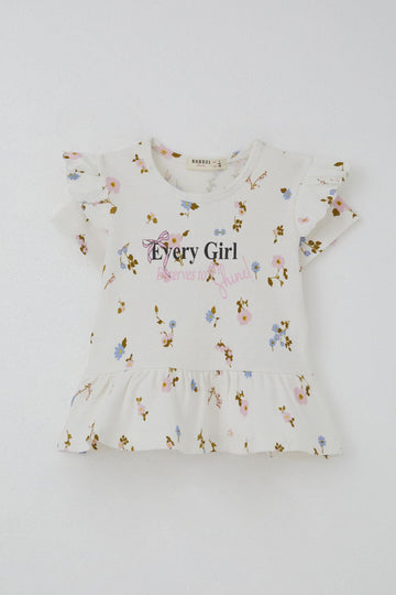 BRE Breeze Girl Child Leggings Set with Flower Patterned Ruffled Sleeves Detail 2-6 Years, Ecru - Bangor