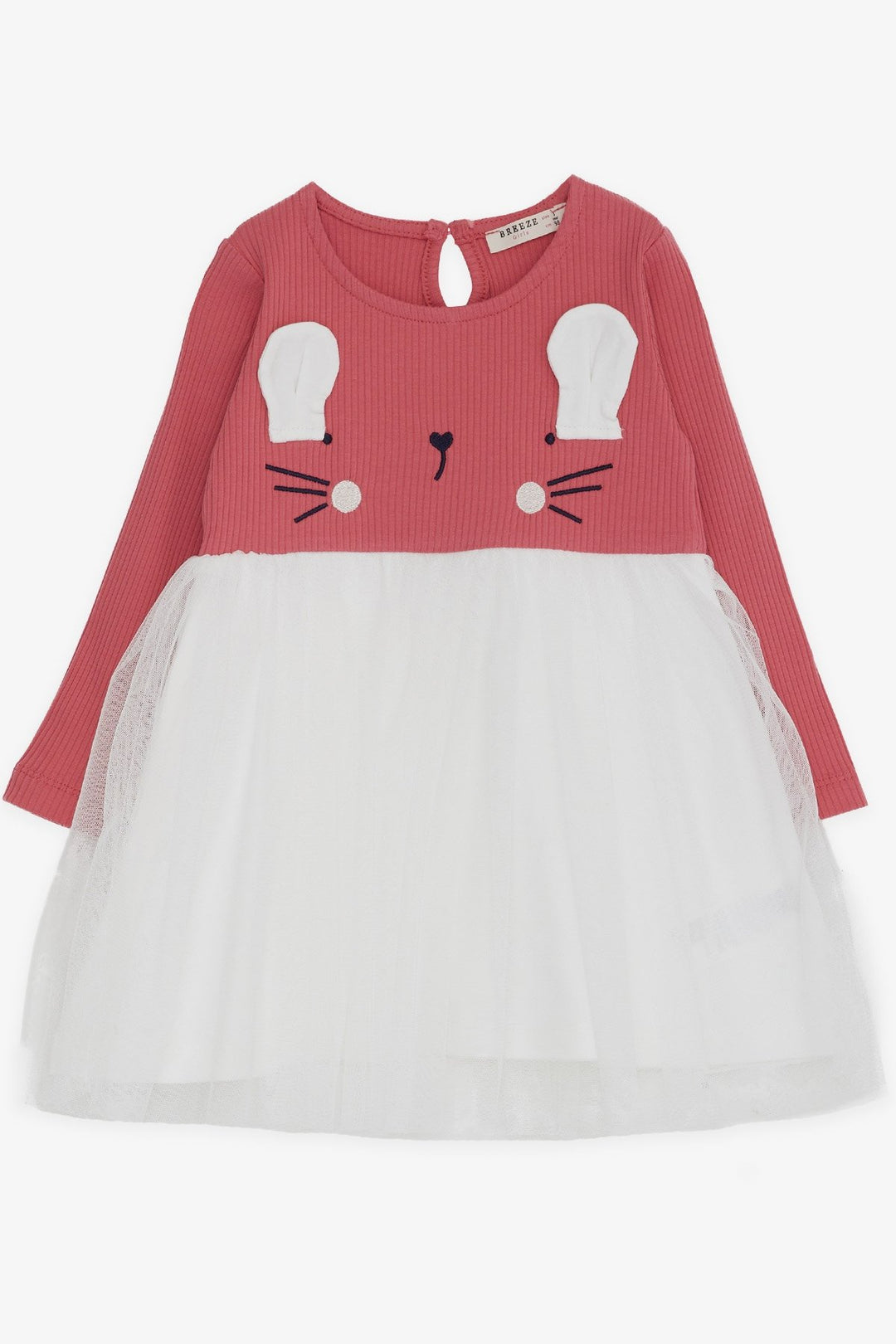 BRE Breeze Girl Child Long Sleeve Dress with Cat Embroidery 1.5-5 Years, Rose Pink - Dresden