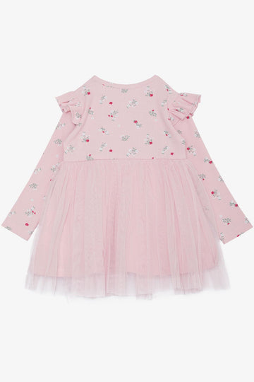BRE Breeze Girl Child Long Sleeve Dress with Flower Pattern Buttoned Frilly Shoulder 2-6 Years, Pink - Navapolatsk