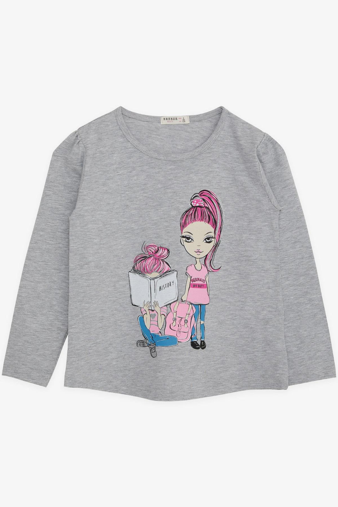 BRE Breeze Girl Child Long Sleeve T-Shirt Girl Bakılı 4-9 Years, Gray Melange - Louisville
