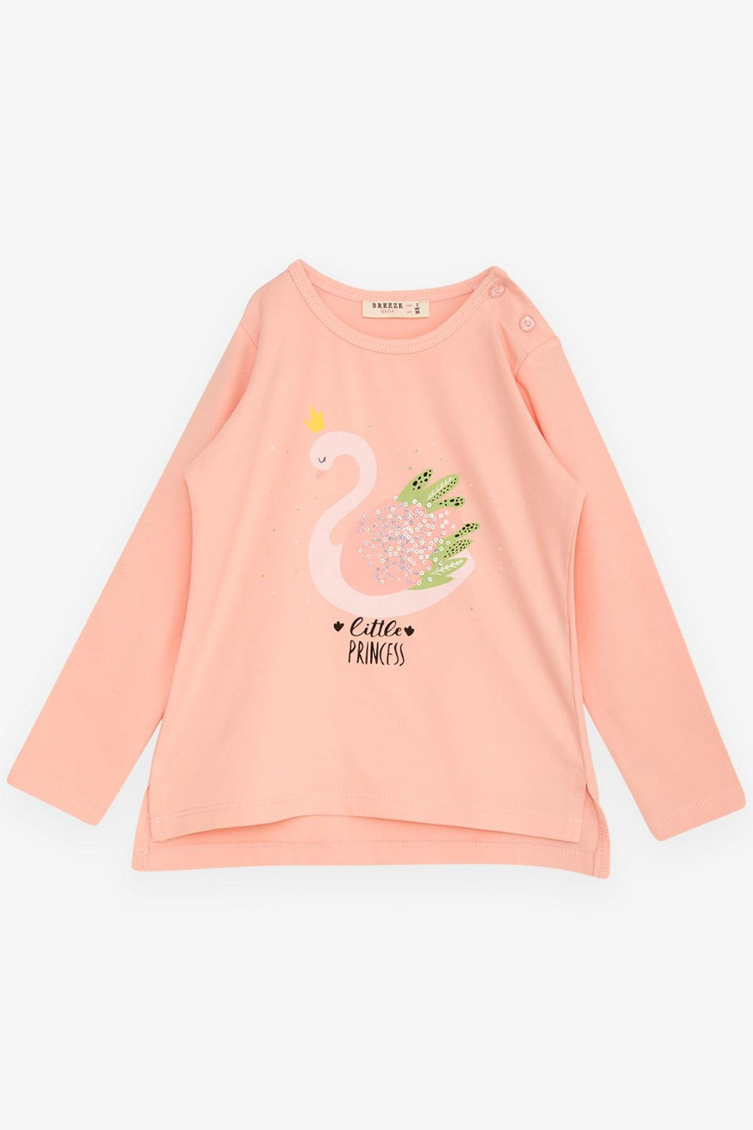 BRE Breeze Girl Child Long Sleeve T-Shirt Princess Swan Printed Sequined 2-6 Years, Salmon - Enschede