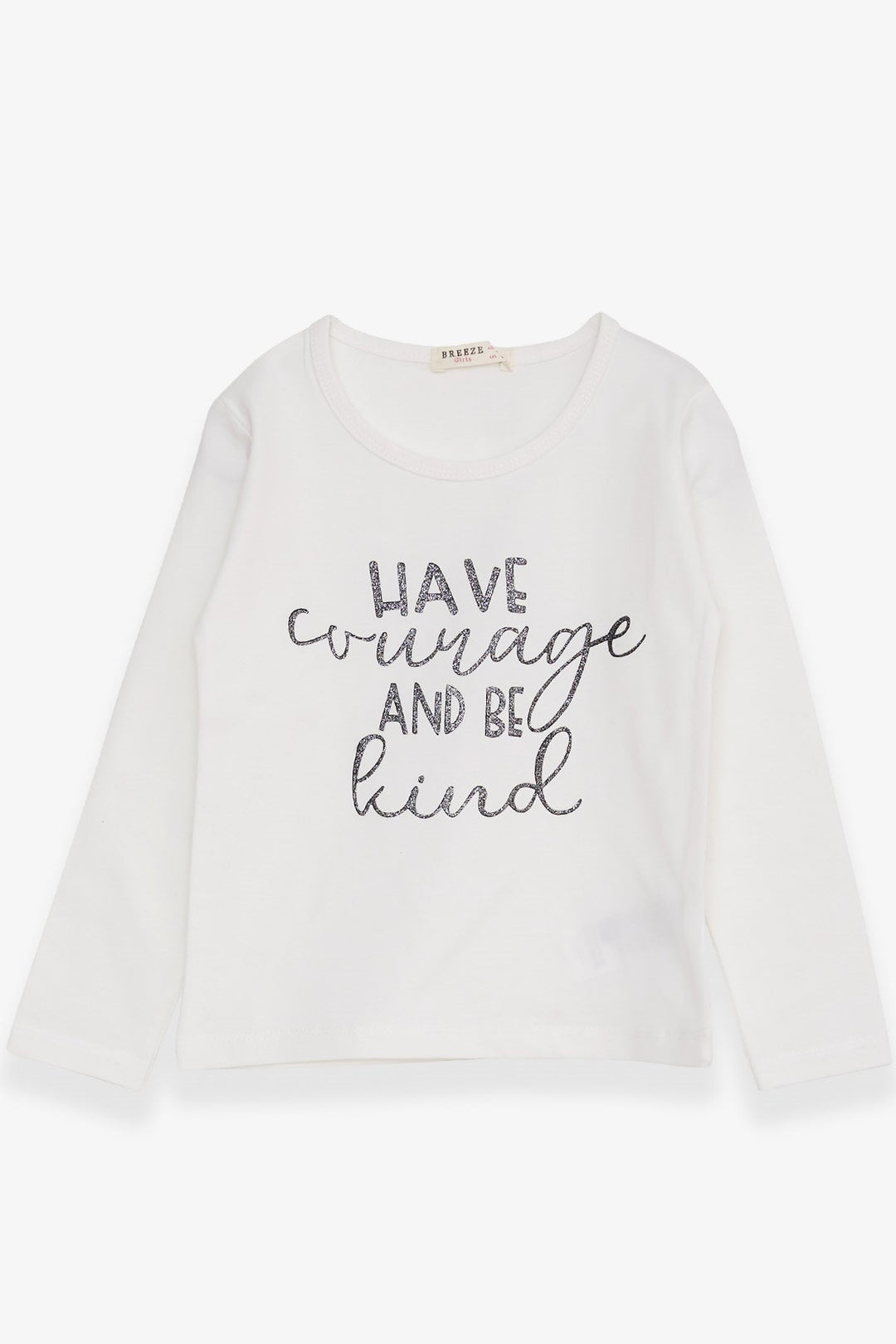 BRE Breeze Girl Child Long Sleeve T-Shirt with Glittery Printed Text, 3-7 Years, Ecru - Alhambra