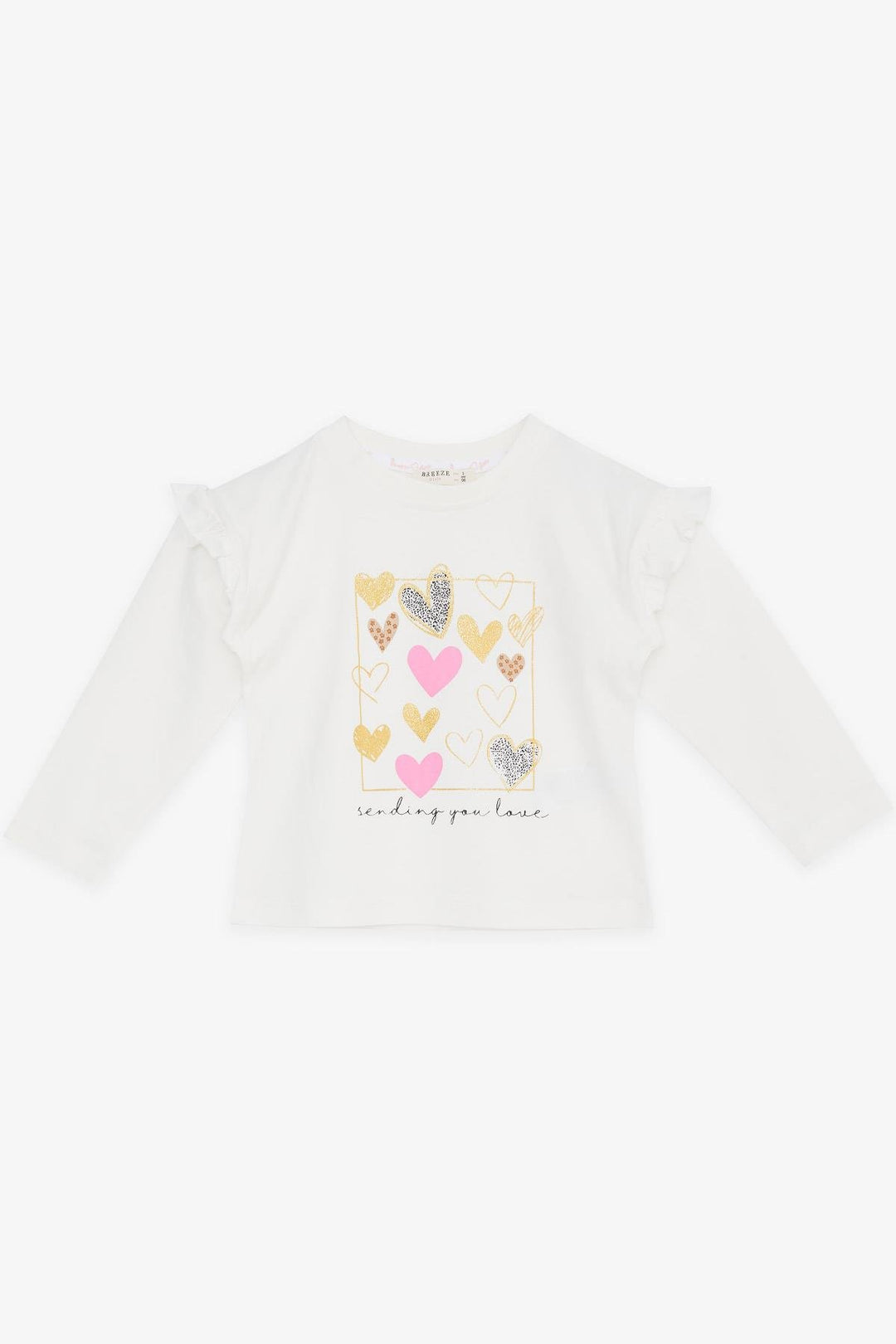BRE Breeze Girl Child Long Sleeve T-Shirt with Glitter Heart Print Ruffled 1-4 Years, Ecru - Heroica Nogales