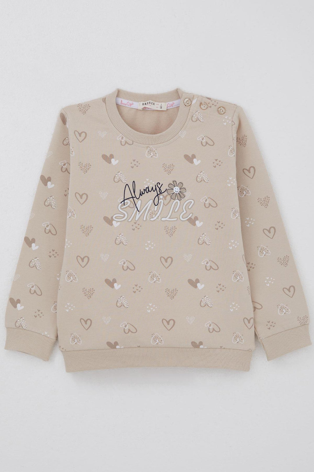 BRE Breeze Girl Child Sweatshirt Heart Pattern Printed Text 1.5-5 Years, Beige - Johns Creek