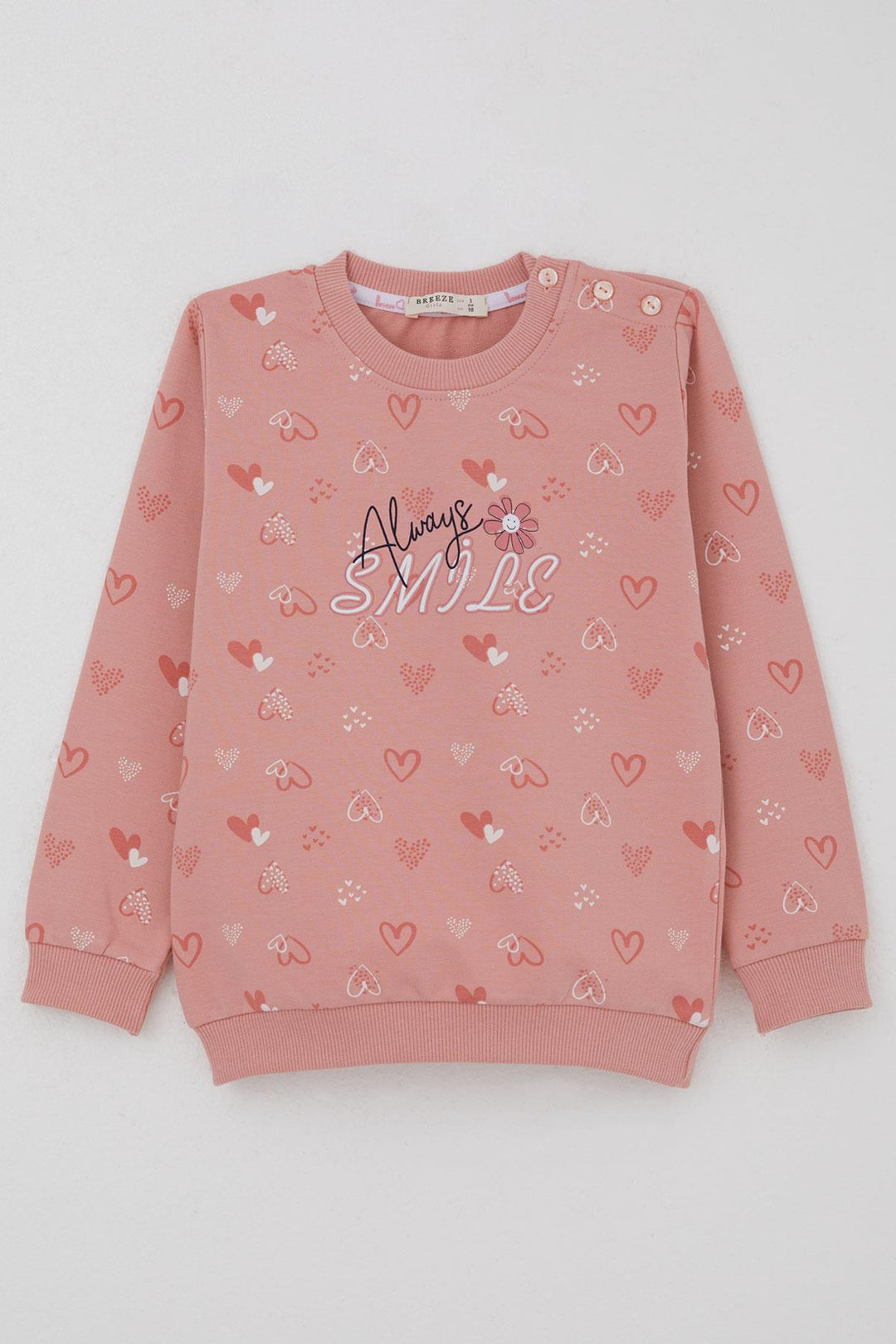 BRE Breeze Girl Child Sweatshirt Heart Pattern Printed Text 1.5-5 Years, Rose Pink - Cannes