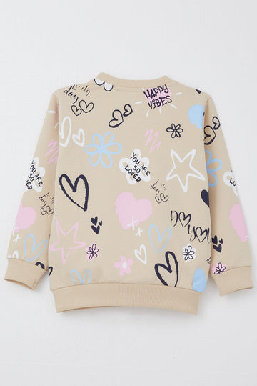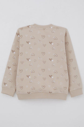 BRE Breeze Girl Child Sweatshirt Love Themed Heart Patterned 3-8 Years, Beige - Bellevue