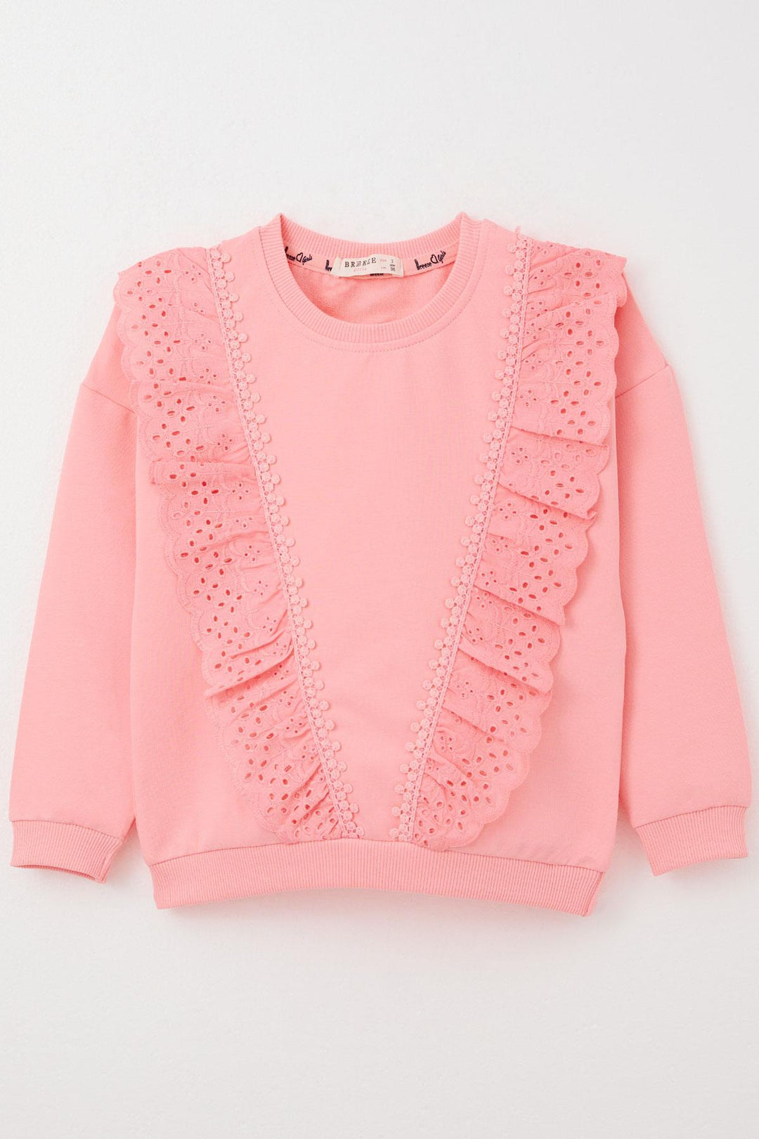 BRE Breeze Girl Child Sweatshirt with Lace 1.5-5 Years, Salmon - San Jacinto