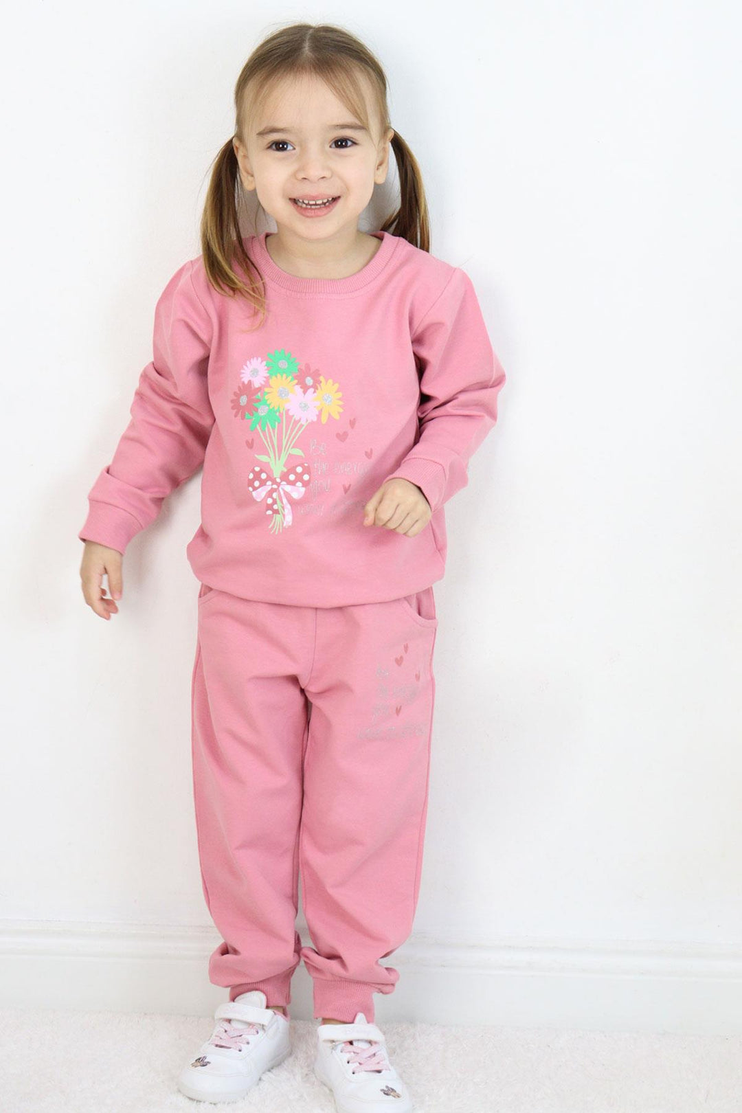 BRE Breeze Girl Child Tracksuit Colorful Flower Bouquet Printed 1.5-5 Years, Rose Pink - Paredes