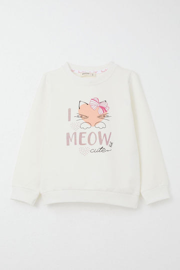 BRE Breeze Girl Child Tracksuit Cute Bow Printed Cat 1.5-5 Years, Ecru - El Monte