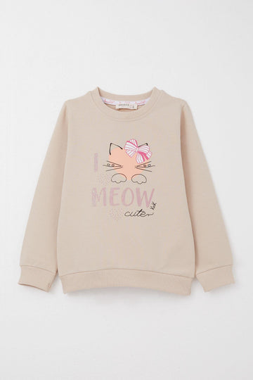 BRE Breeze Girl Child Tracksuit Cute Bow Printed Cat 1.5-5 Years, Beige - San Luis Potosí