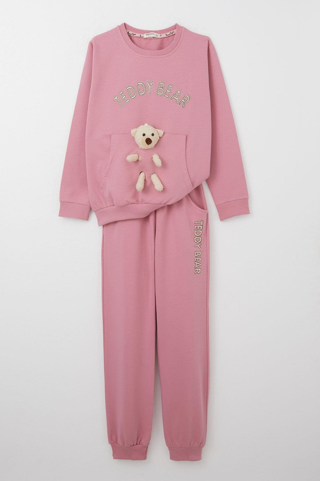 BRE Breeze Girl Child Tracksuit with Bear Accessory Embroidered Writing 5-9 Years, Rose Pink - McMinnville
