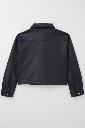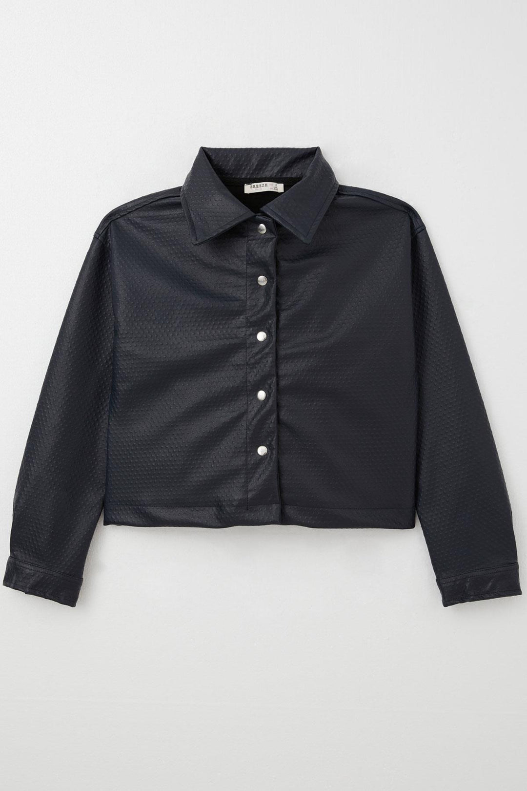 BRE Breeze Girl's Leather Jacket with Embossed Pattern Snap Fastener 94 Years, Navy Blue - Brandon