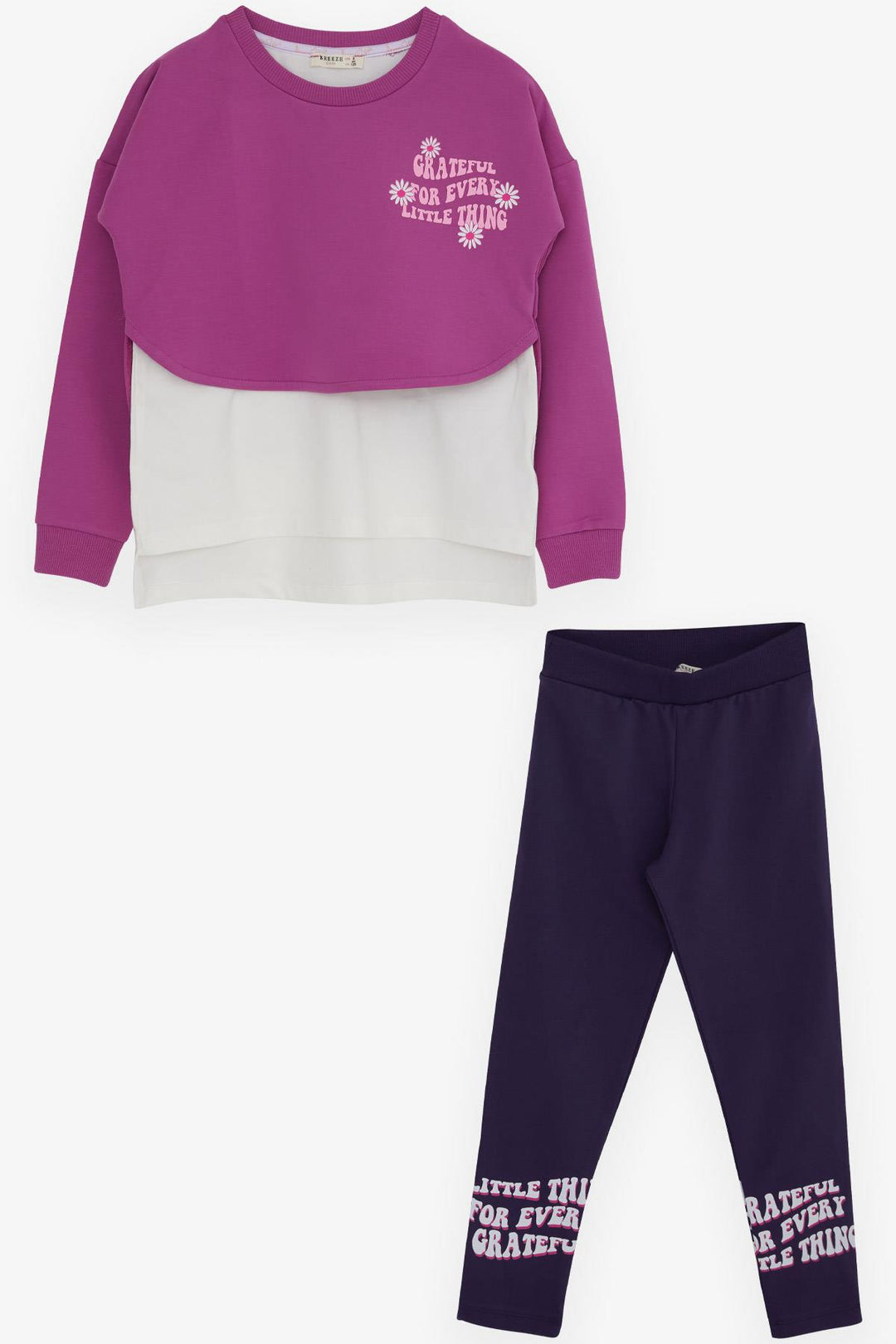 BRE Breeze Girl's Legging Set with Flower Print for Summer, 82 Years, Purple - Wichita Falls