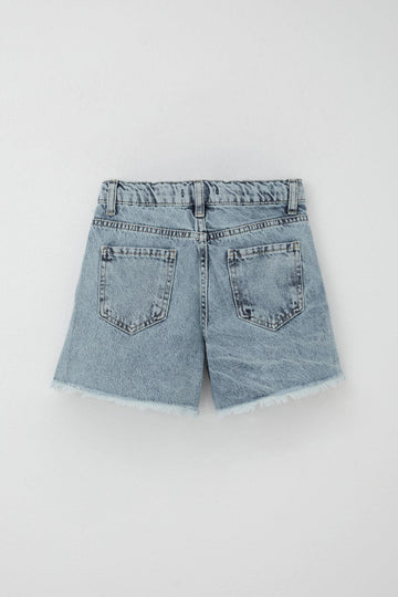 BRE Breeze Girl's Shorts Jeans with Pocket Fringe Detail 5-9 Years, Light Blue - Jaén