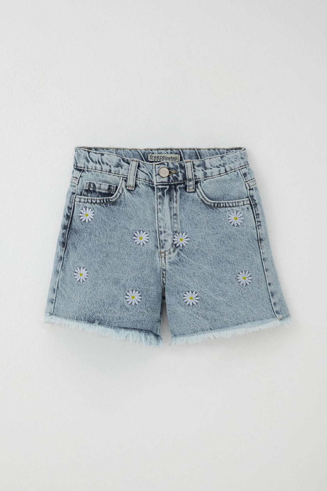 BRE Breeze Girl's Shorts Jeans with Daisy Embroidery Hem Tassel Detail 104 Years, Light Blue - Offenburg