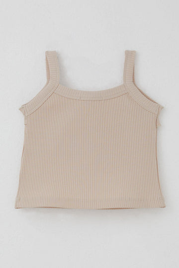 BRE Breeze Girl's Sleeveless Crop Top with Frill Detail, 84 Years, Beige - Antioch