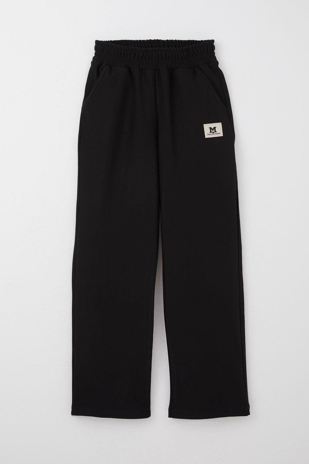 BRE Breeze Girl's Sweatpants with Waistband Detail and Pearl Embroidery, 94 Years, Black - Independence