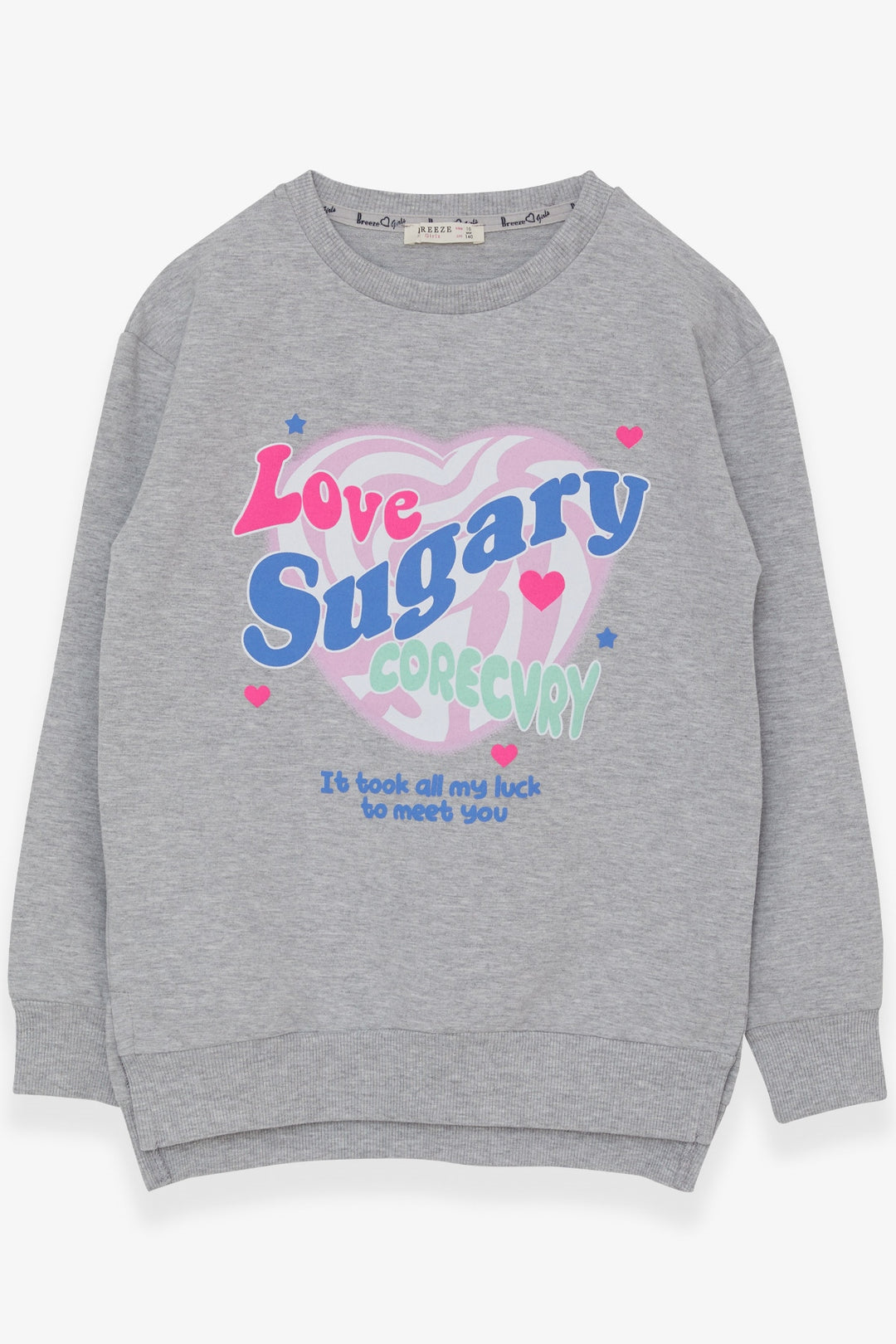 BRE Breeze Girl's Sweatshirt with Sequin Printed Writing, 4-8 Years, Light Grey Melange - Tlalnepantla