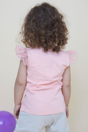 BRE Breeze Girl's T-shirt Crazy Girl Printed Sleeves Embroidered Lace 1.5-5 Years, Salmon - Daytona Beach