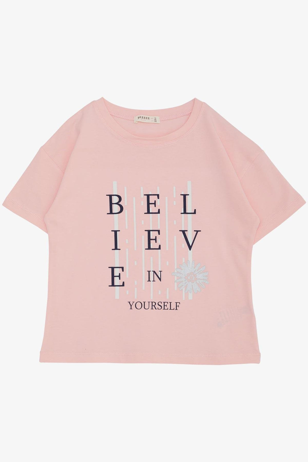 BRE Breeze Girl's T-shirt Belt Length Flower & Text Printed 72 Years, Powder - Kempten