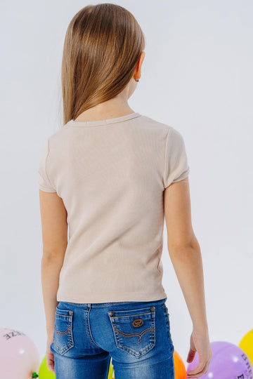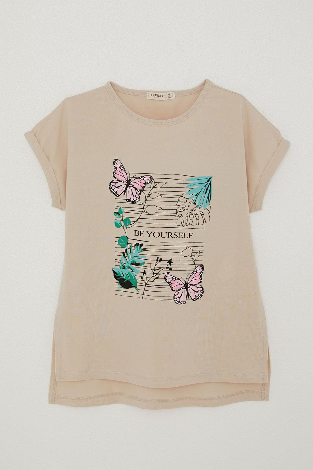 BRE Breeze Girl's T-shirt Butterfly & Flower Printed 106 Years, Beige - Drohobych