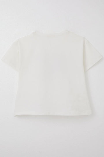 BRE Breeze Girl's T-shirt Flower & Text Printed Sequined 94 Years, Ecru - Bryan