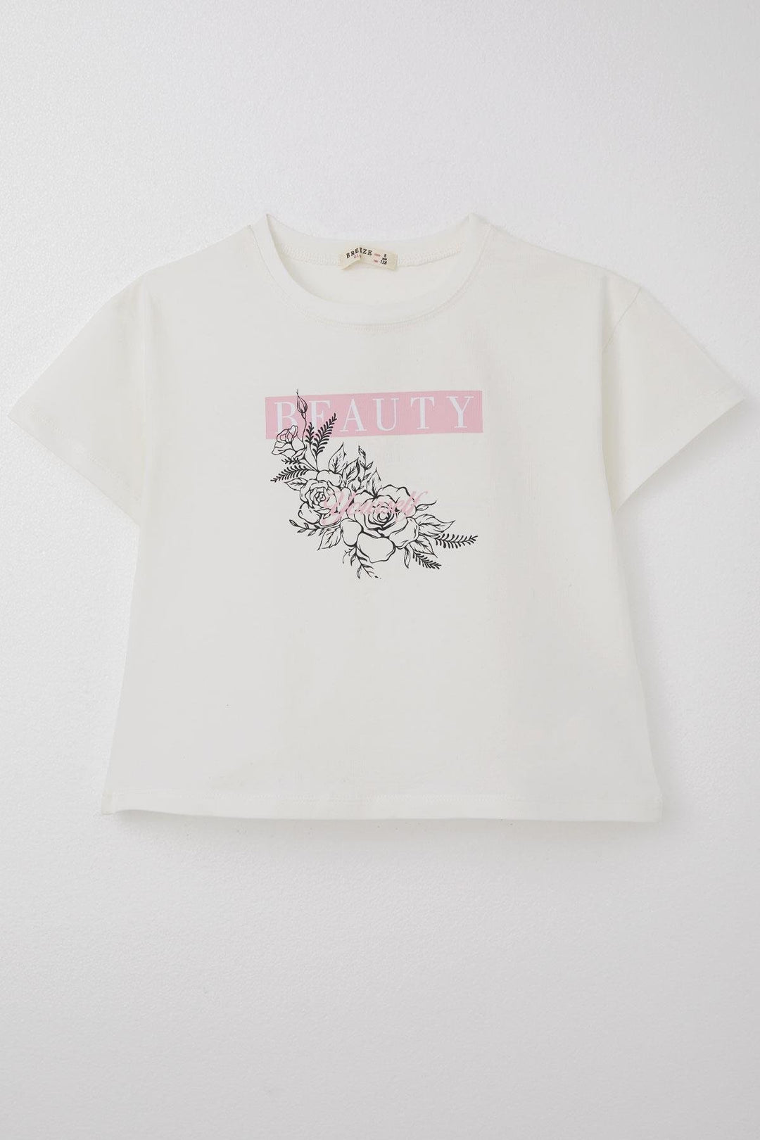 BRE Breeze Girl's T-shirt Fashion Themed Writing & Colorful Flower Printed 104 Years, Ecru - Ciudad General Escobedo