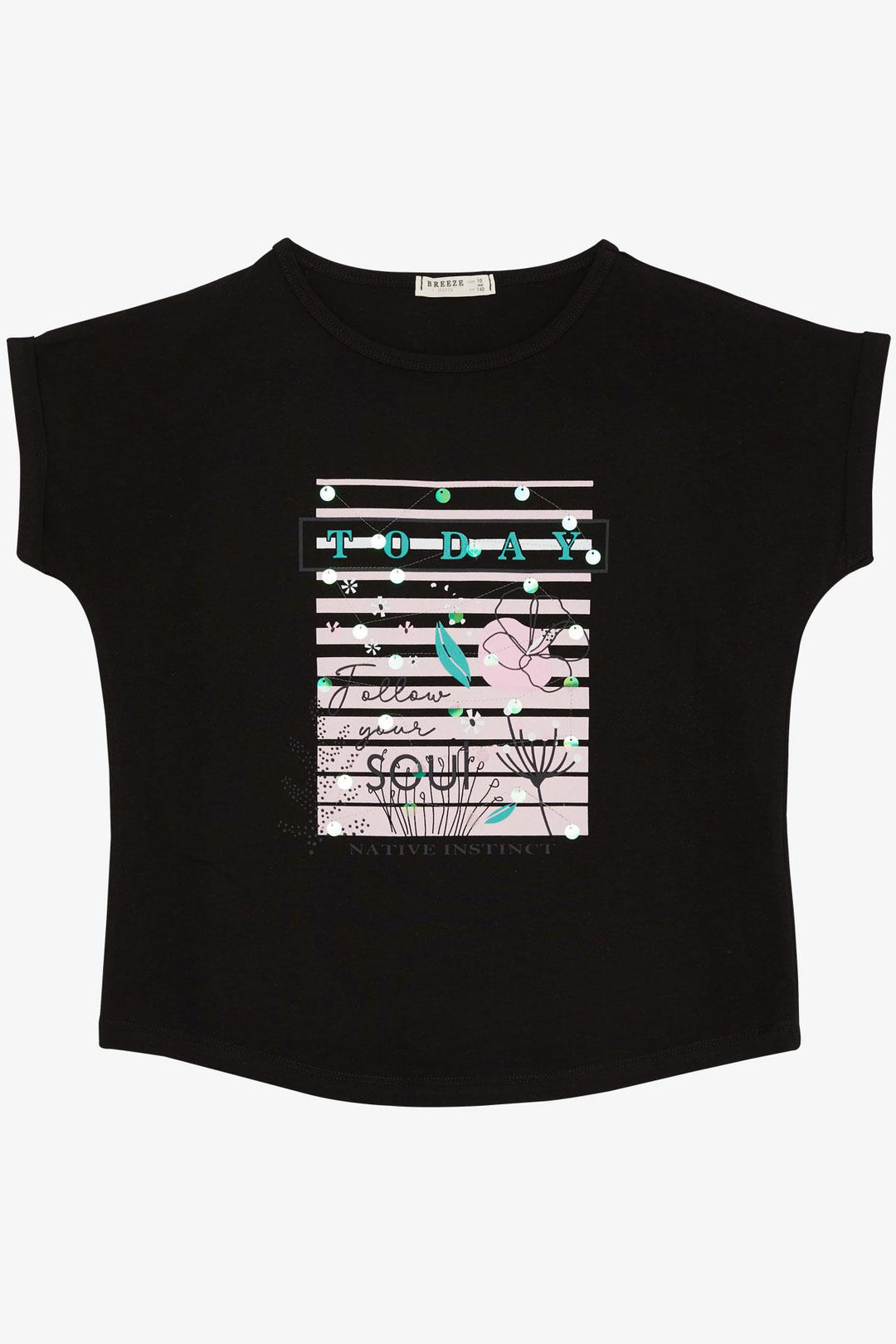 BRE Breeze Girl's T-shirt Flower & Text Printed Sequined 94 Years, Black - Eden Prairie