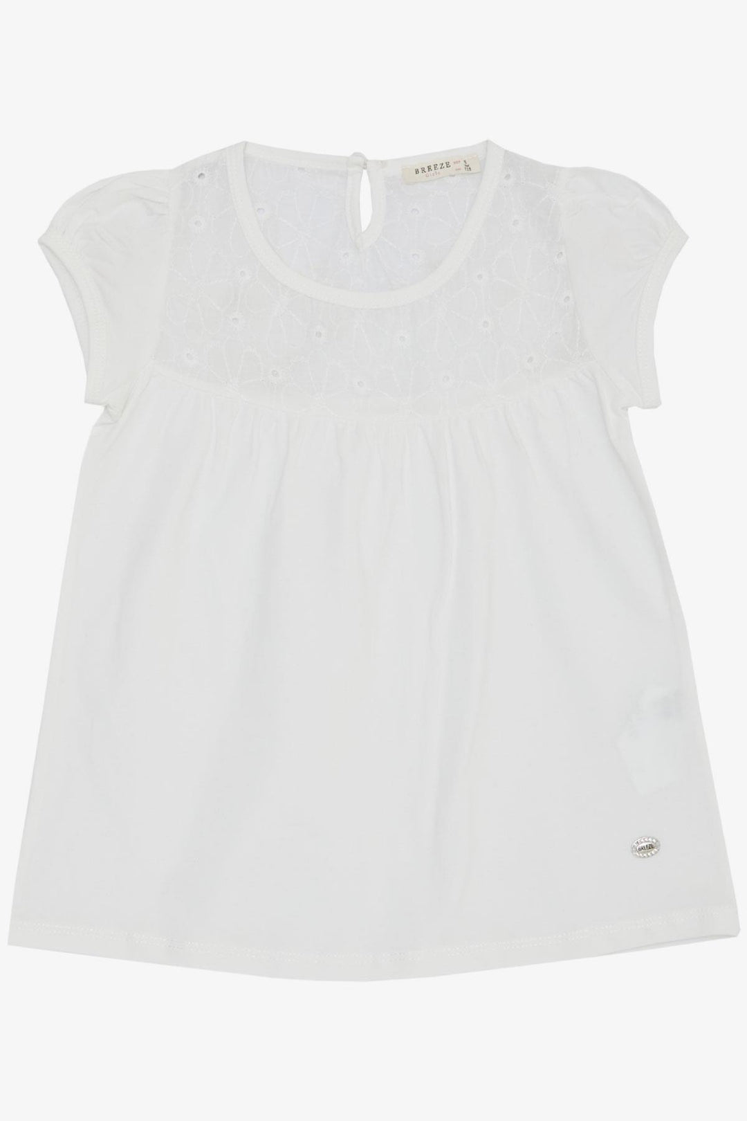 BRE Breeze Girl's T-shirt Embroidered with Flowers, 4-8 Years, Ecru - Salina