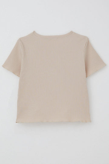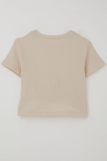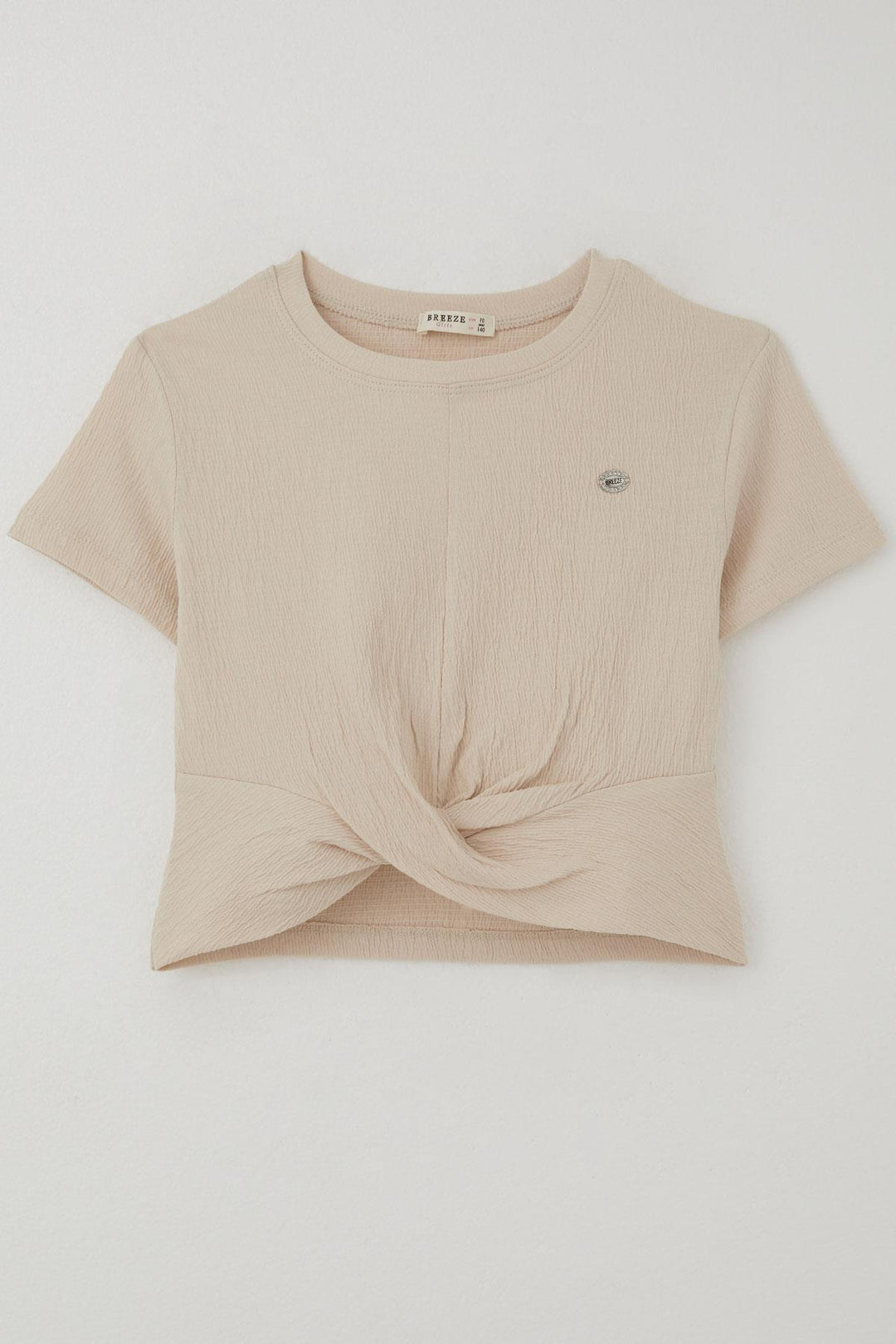 BRE Breeze Girl's T-shirt with Belted Short Sleeves Frilly Crepe Fabric, Beige, 3-7 Years - Cabo San Lucas