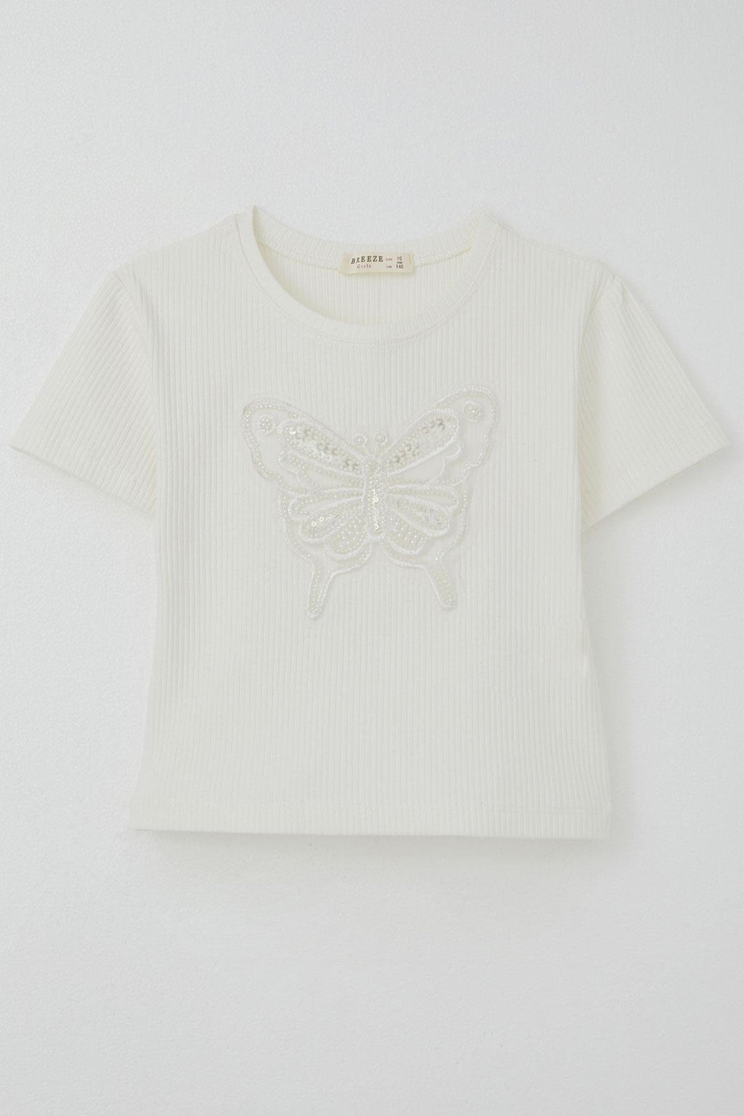 BRE Breeze Girl's T-shirt with Butterfly Print and Stone Detail, 94 Years, Ecru - Voznesensk