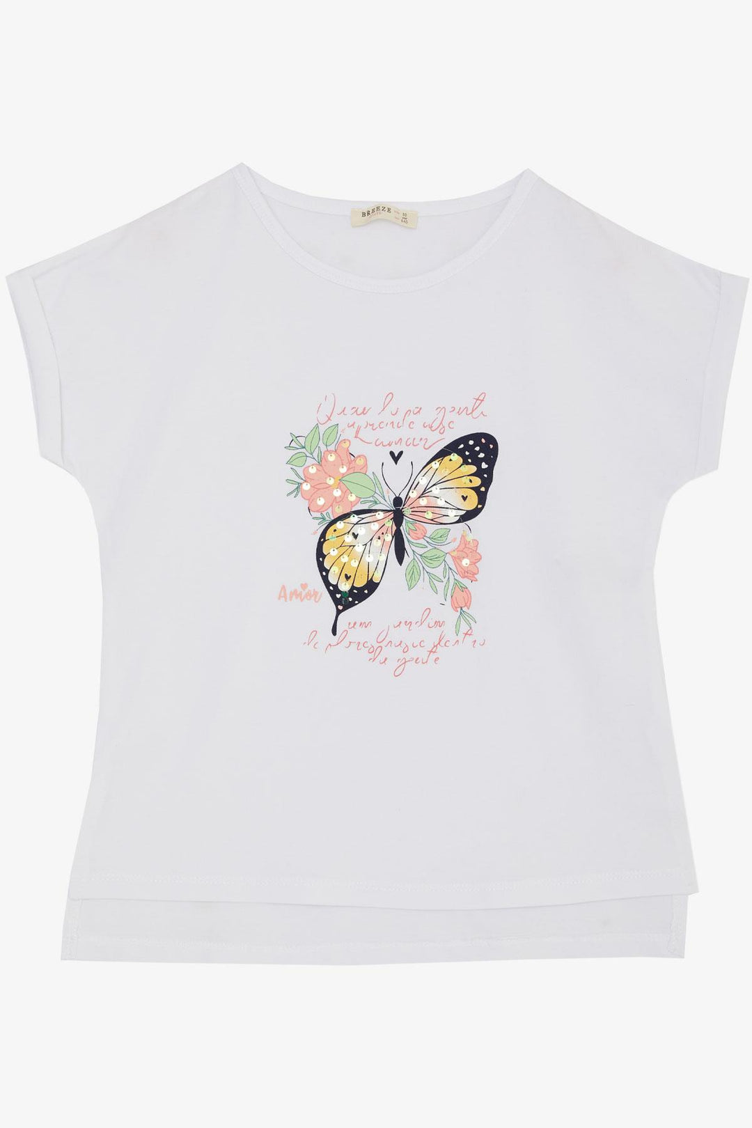BRE Breeze Girl's T-shirt with Butterfly Print, 106 Years, White - Sorel-Tracy