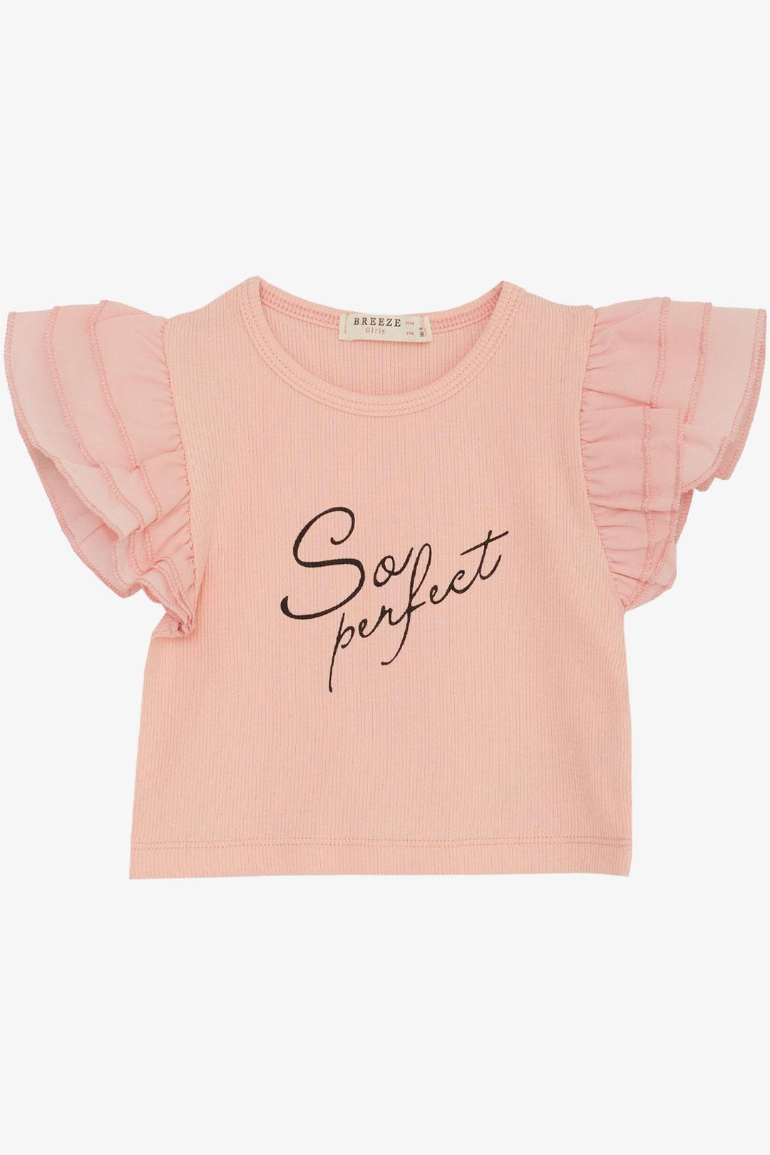 BRE Breeze Girl's T-shirt with Belted Sleeves Frilly Crepe Fabric 3-7 Years, Salmon - Bloomington