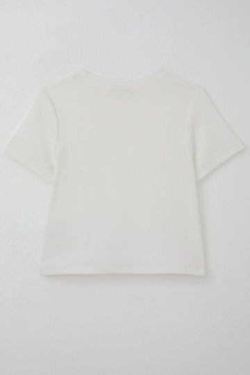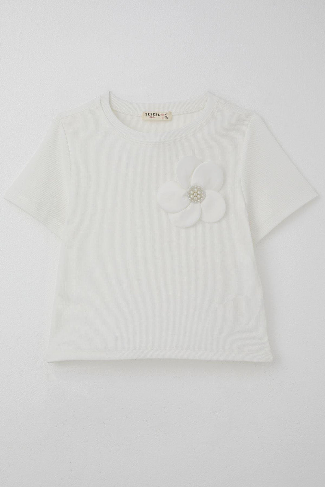 BRE Breeze Girl's T-shirt with Flower Accessories and Pearl Details, 94 Years, Ecru - Montclair