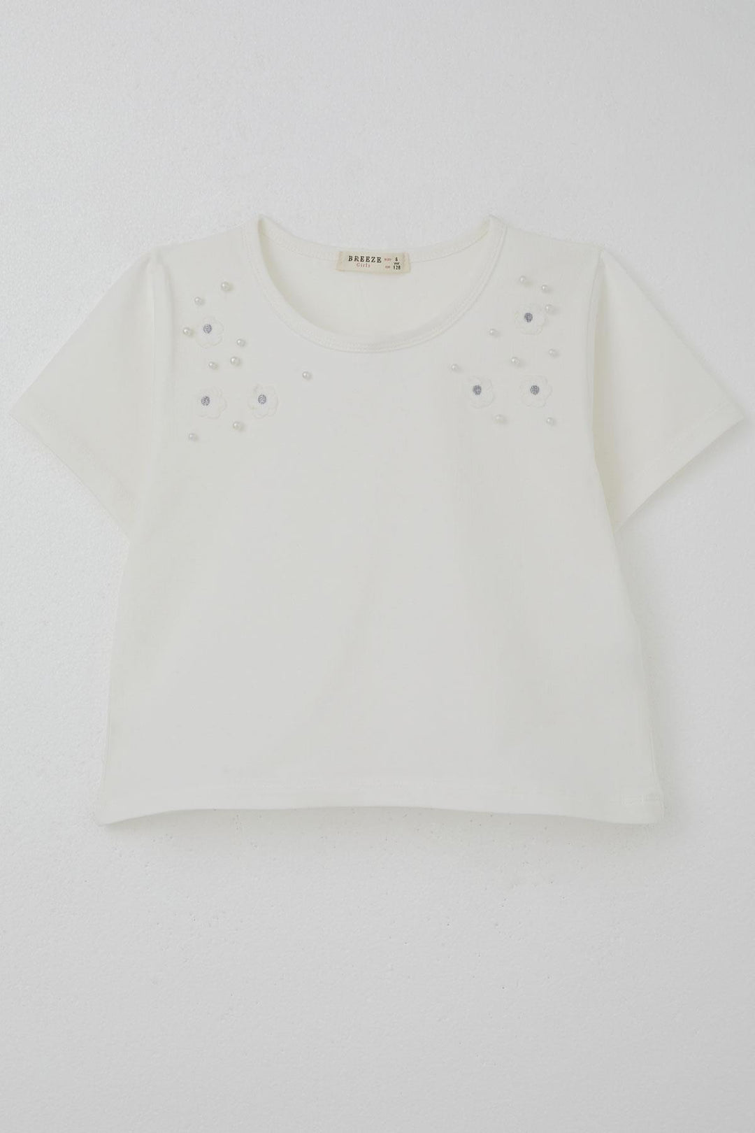 BRE Breeze Girl's T-Shirt with Pearl Detail Flower Accessories, 62 Years, Ecru - San Juan