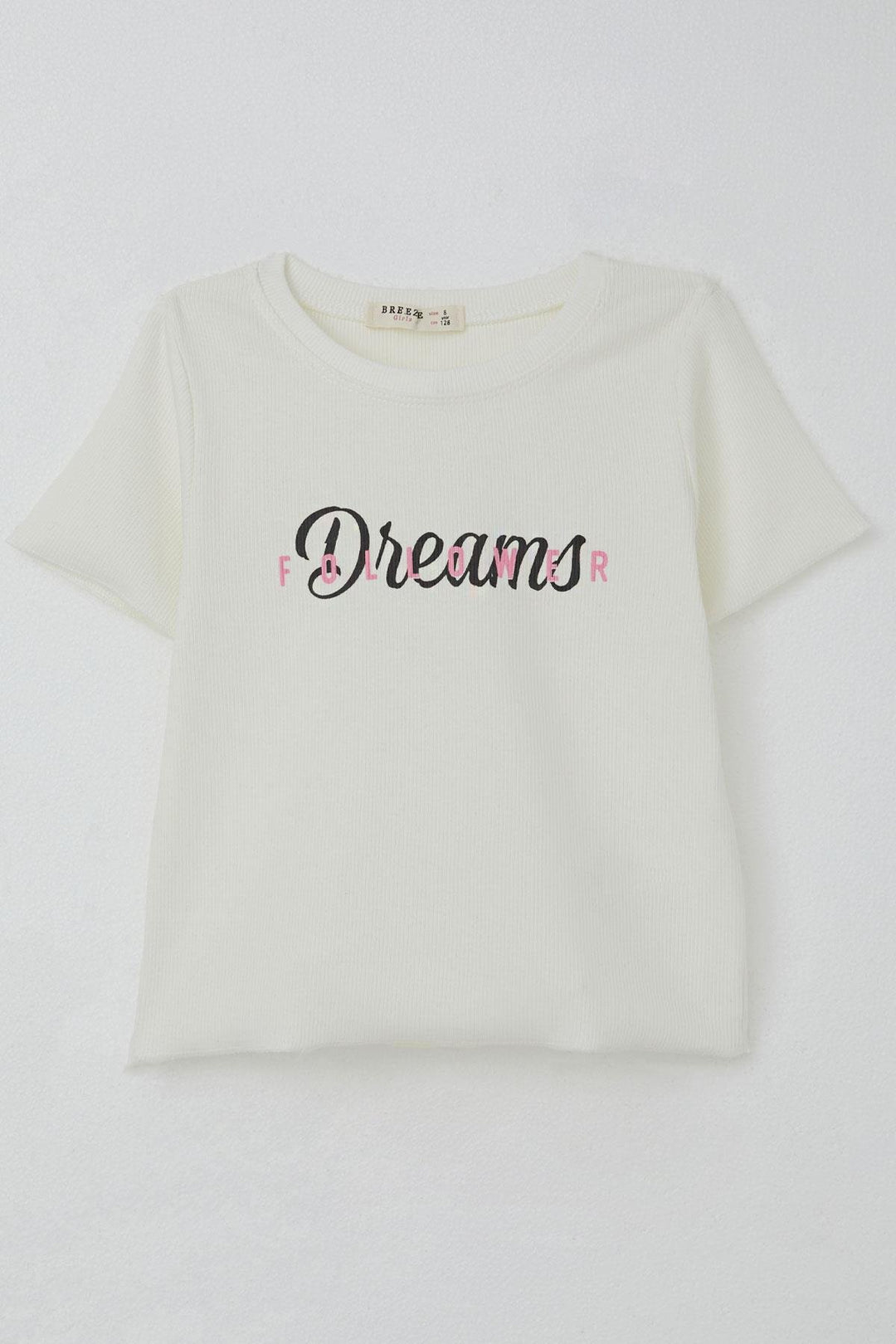 BRE Breeze Girl's T-shirt with Printed Text, 96 Years, Ecru - Georgetown