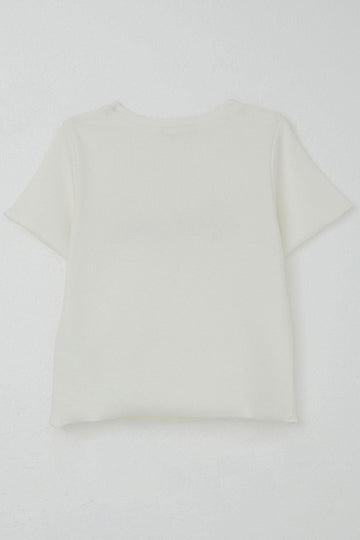 BRE Breeze Girl's T-shirt with Lace Flower & Leaf Embroidery, 62 Years, Ecru - Tuxtla