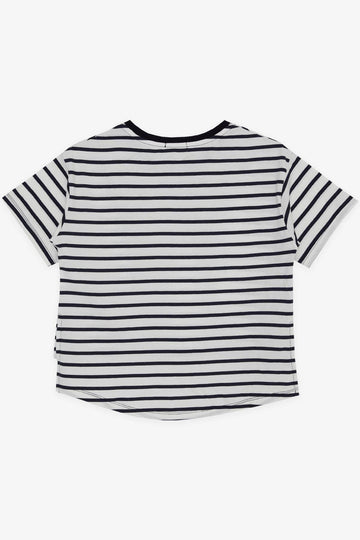 BRE Breeze Girl's T-shirt with Printed Text on the Front Short Striped 96 Years, White - Apatzingan de la Constitucion