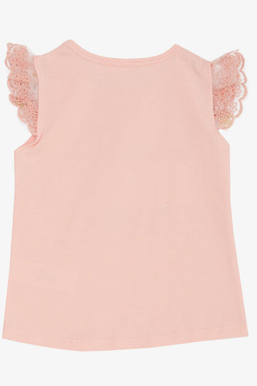 BRE Breeze Girl's T-Shirt with Ruffled Guipure Embroidery, 3-8 Years, Salmon - Maddaloni