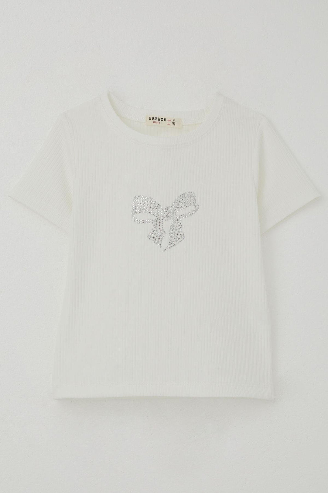 BRE Breeze Girl's T-shirt with Rhinestone Bow Print 84 Years, Ecru - Hinckley