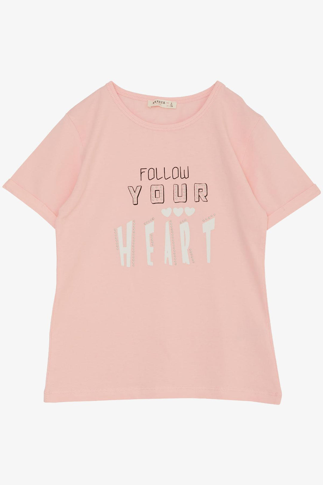 BRE Breeze Girl's T-shirt with Rhinestone Writing & Heart Print, 84 Years, Pink - Ciampino
