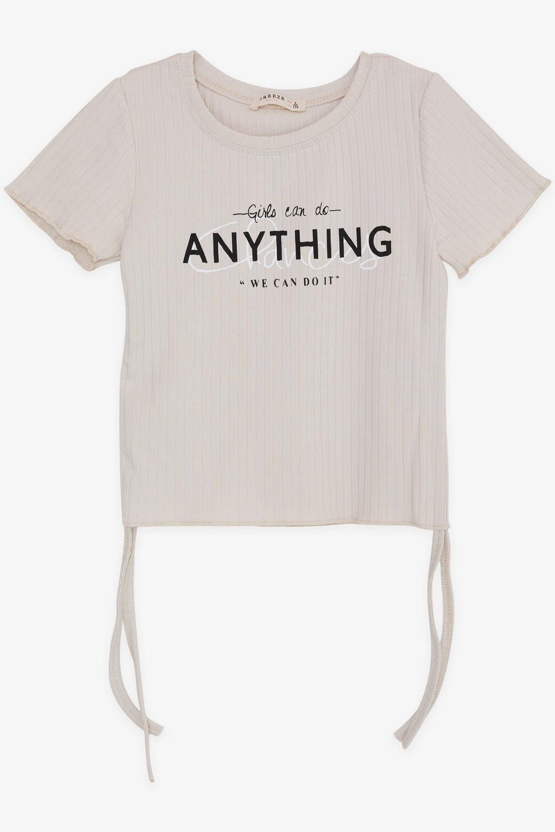 BRE Breeze Girl's T-Shirt with Ruched Sides Printed with Text, 84 Years, Beige - Marietta
