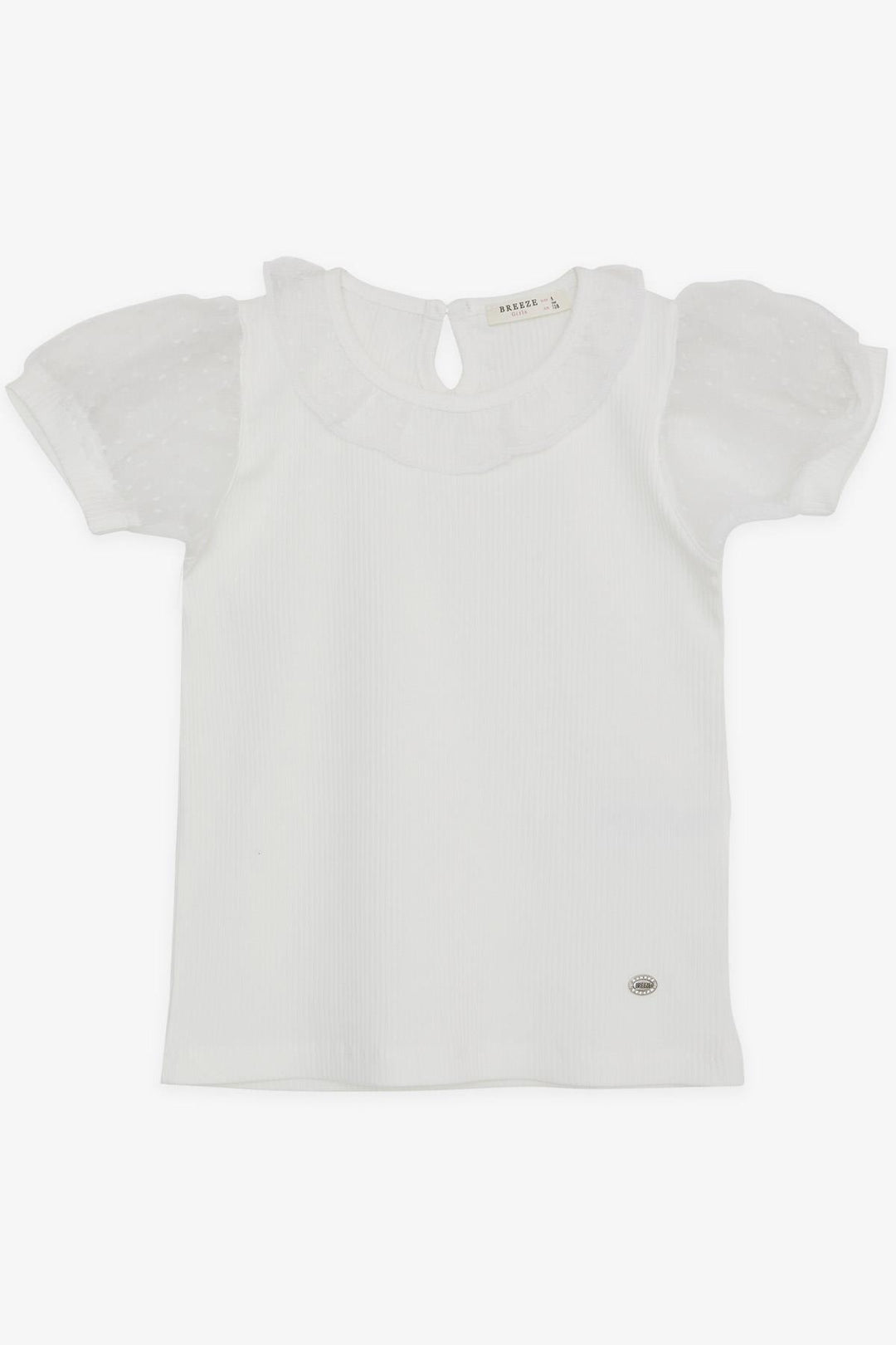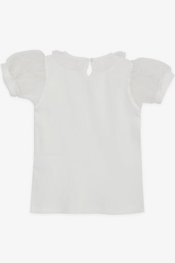 BRE Breeze Girl's T-shirt with Tulle Collar Sleeves, 72 Years, Ecru - San Luis
