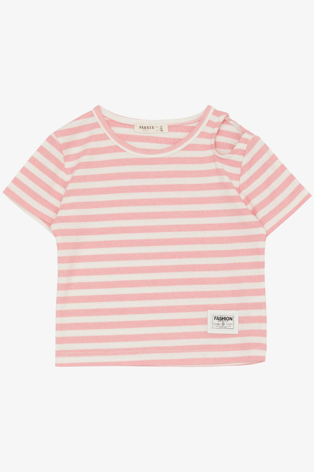 BRE Breeze Girl's T-shirt with Shoulder Detail, Emblem Belt Length 94 Years, Pink - Grand Junction