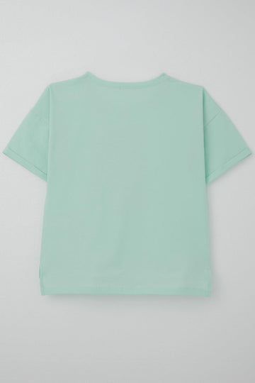 BRE Breeze Girl's T-shirt with Stone Accessories Flower Printed 96 Years, Aqua Green - Dudley