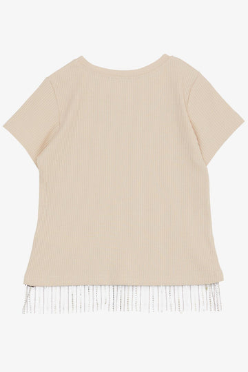 BRE Breeze Girl's T-shirt with Stone Fringes 94 Years, Beige - Middlesbrough