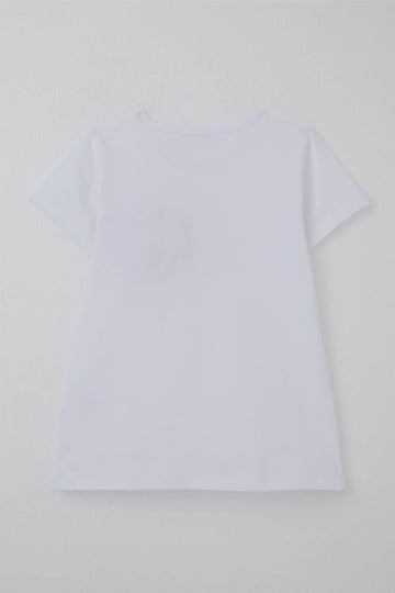 BRE Breeze Girl's T-shirt with Sequined Crescent Star, White, 64 Years - Santa Monica