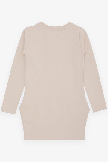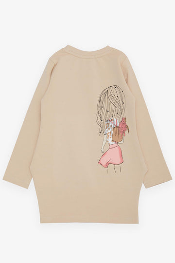 BRE Breeze Girl's Tunic with Happy Girl Printed Sequins, 3-7 Years, Beige - Chalon-sur-Saône