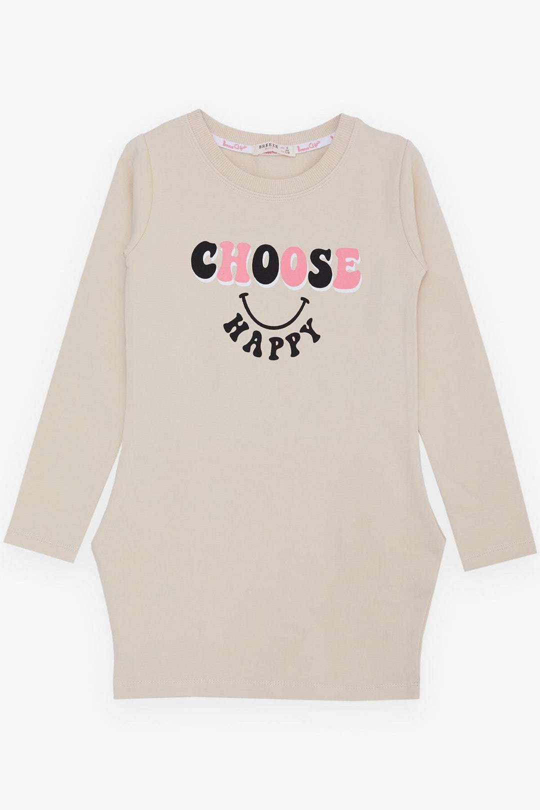 BRE Breeze Girl's Tunic with Happiness Theme Print, 82 Years, Beige - Irpin